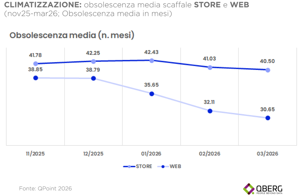 L’elevato numero di novità ha avuto un impatto diretto anche sull’obsolescenza degli assortimenti. Gli scaffali – fisici e digitali – risultano oggi più “freschi”, con una riduzione significativa dei prodotti più datati. Tuttavia, emergono differenze rilevanti tra i canali: l’online, grazie a una capacità espositiva virtualmente illimitata, si dimostra più rapido nell’introdurre nuovi modelli, mentre il retail fisico sconta maggiormente il peso delle giacenze di magazzino.