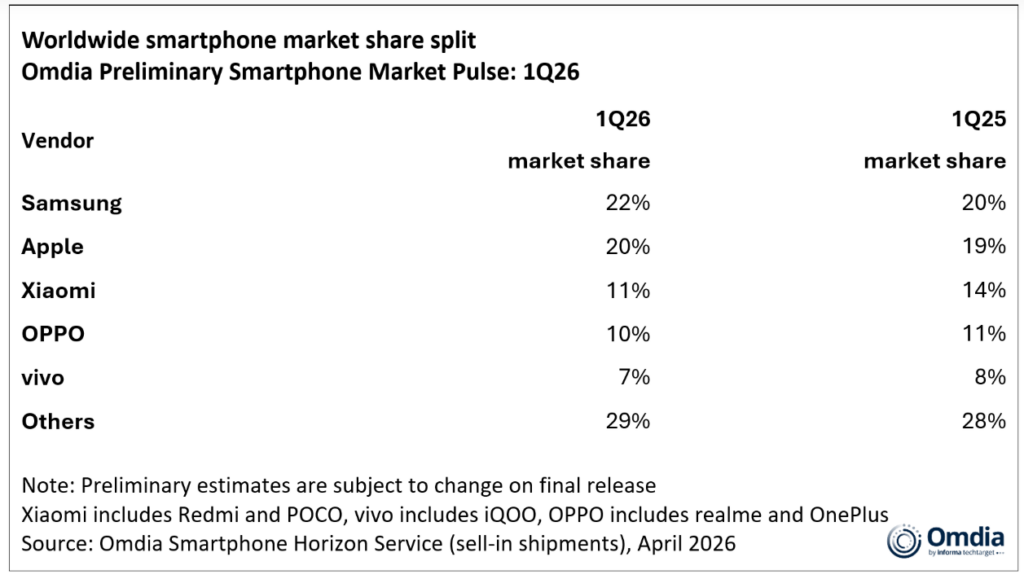 Il mercato globale degli smartphone apre il 2026 con un segnale positivo ma fragile: nel primo trimestre le spedizioni crescono dell’1% su base annua, superando le aspettative iniziali. Secondo Omdia, la performance è stata sostenuta in parte da dinamiche tattiche lungo la filiera, in particolare dall’anticipo degli ordini e delle consegne per contenere l’impatto dell’aumento dei costi.